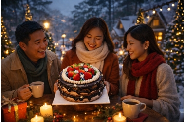 Khác với bánh sinh nhật hay bánh cho những dịp khác, bánh mùa Noel thường gắn với nhiều người hơn là một cá nhân. Đó là chiếc bánh để chia sẻ, để cắt ra cho từng người trong nhà, để cùng nhau thưởng thức. Bánh mùa Noel vì thế mang dáng dấp gia đình rất rõ, không cần quá ngọt, không cần quá nhiều tầng, chỉ cần vừa đủ cho mọi người cùng ăn và cùng trò chuyện. Khi chiếc bánh được đặt giữa bàn, khoảng cách giữa các thành viên cũng dường như gần lại hơn.