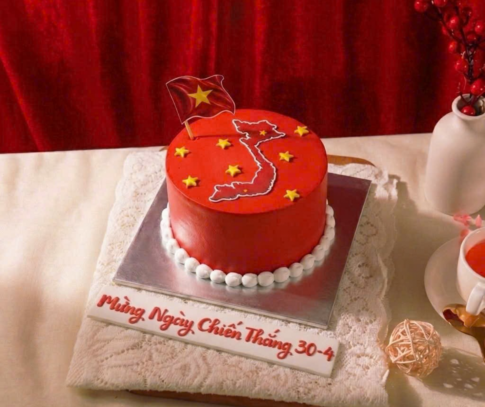 Mẫu 1: Bánh Kem "Lá Cờ Tổ Quốc & Bản Đồ Chữ S"