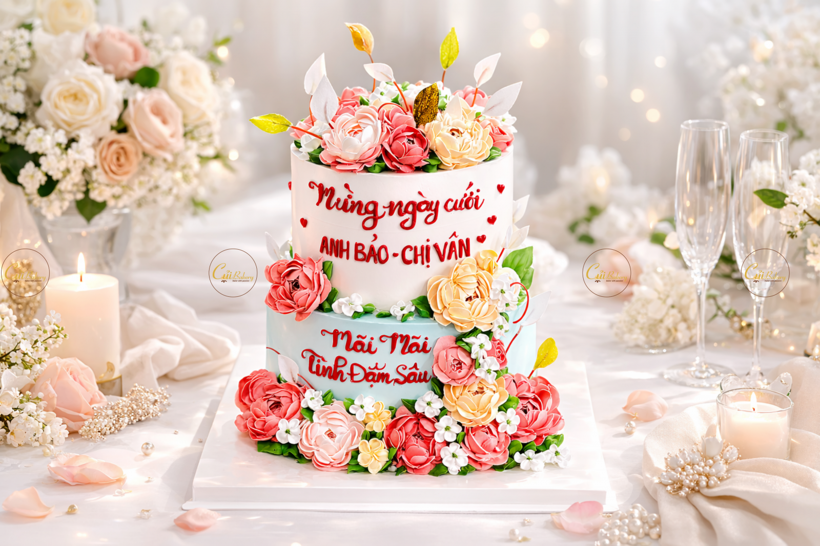 Thiết kế cá nhân hóa: Bạn có thể gửi mẫu hoặc ý tưởng, Củi sẽ hiện thực hóa nó thành chiếc bánh mang dấu ấn riêng của hai bạn.